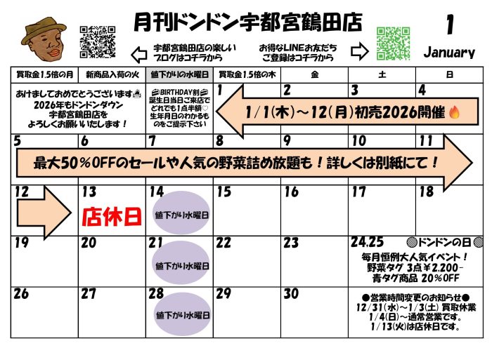 2026年もドンドンダウン宇都宮鶴田店をよろしくお願いいたします😊