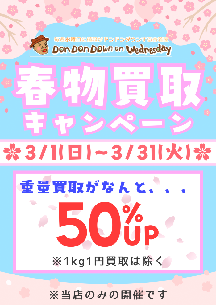 この期間は重量買取(¥500/kg、¥50/kg)がなんと