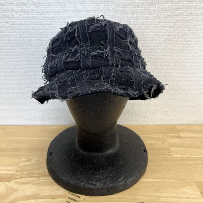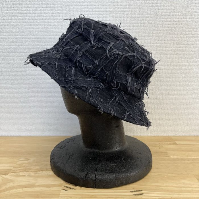 デニムにほつれ加工を加えたパッチワーク仕立てのバケットハット👒