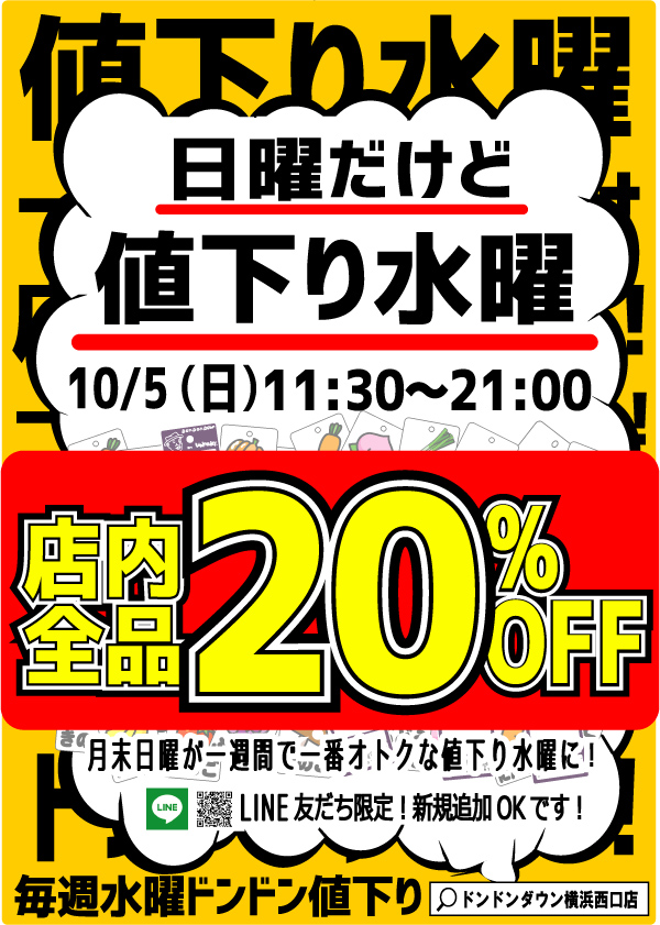 【20%OFF】日曜だけど値下り水曜【10/5(日)11:30-21:00】