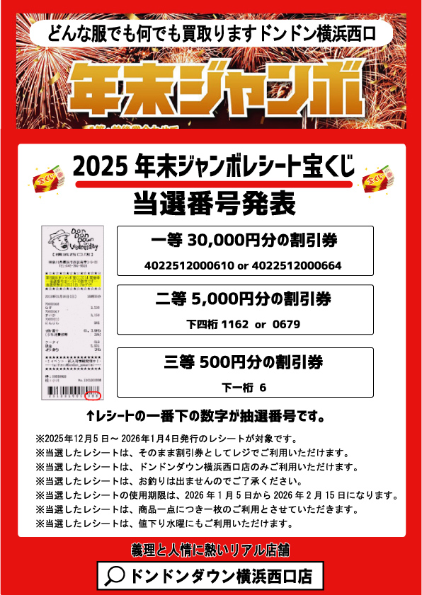 【一等三万円分】当選番号発表!2025年末レシートジャンボ宝くじ!【2026】