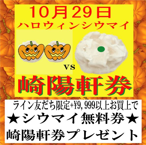 【シウマイ無料券】ハロウィンの魔法 シウマイ崎陽軒券 【10/29(水)11:30-21:30】