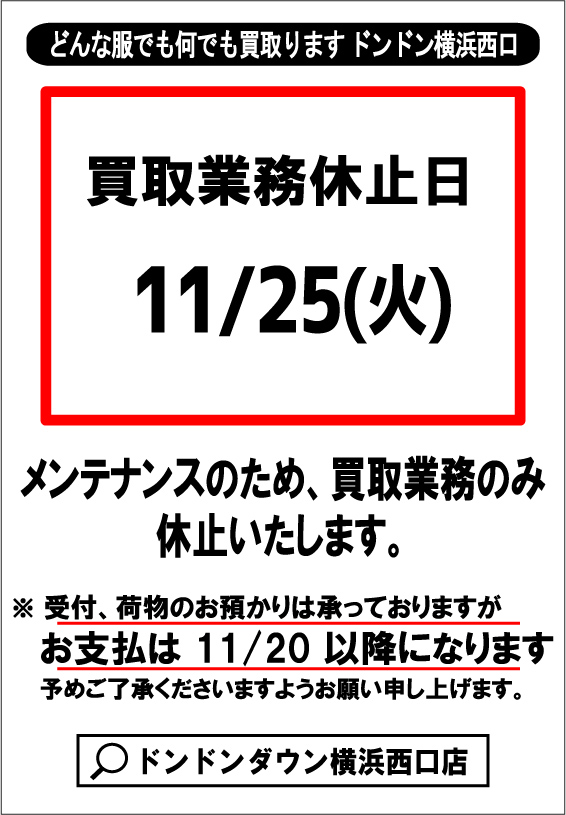 買取業務休止のご案内【11/25(火)】